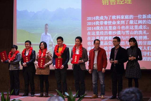 欧科集团的腾飞离不开各部门主管的高线管理,他们作为公司中层骨干,带领所属部门紧跟公司发展步伐,肩负重托,作为团队表率,青春与企业齐飞扬,才华与企业共奋进,欧科集团的发展,更离不开各部门同事的辛勤工作,在各位同仁的共同努力下,我们取得了不俗的成绩。尤其是在整体市场竞争白热化的情况下,能取得这样的成绩离不开各个部门同事的密切配合。集团董事长熊爱武女士,对2014年度欧科优秀员工、优秀集体进行表彰和颁奖。