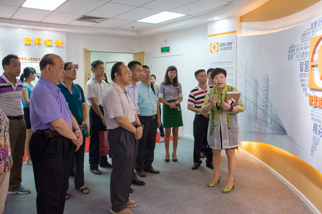 熊爱武董事长带领各位领导参观了欧科集团的展示厅,并详细介绍企业的发展历程,重点阐述企业目前重点经营的几大业务,以及在领域内获得的丰硕成果。