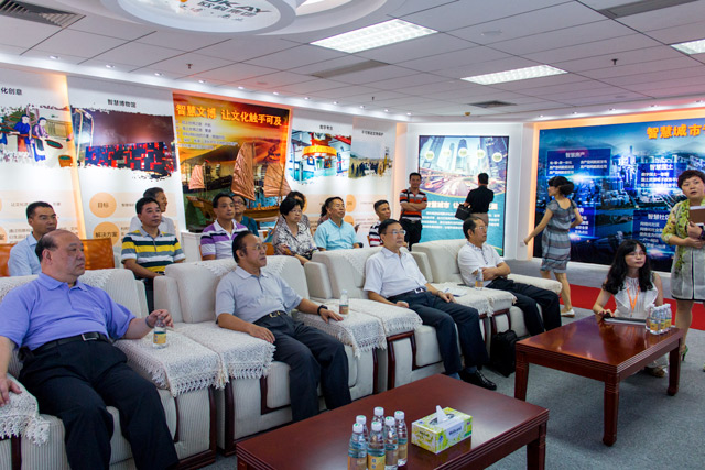 代表欧科在文博领域最新技术应用的“手心里的岭南文化”、“广州市萝岗区文物管理辅助决策系统”等备受在场领导的赞誉。当领导问道有关广州市的地形图时,熊爱武董事长做了详细的解答,领导都频频点头,更发出感叹:“我们在别处都没看到过,在广州生活了几十年,还不知道哪边高哪边低呢!”