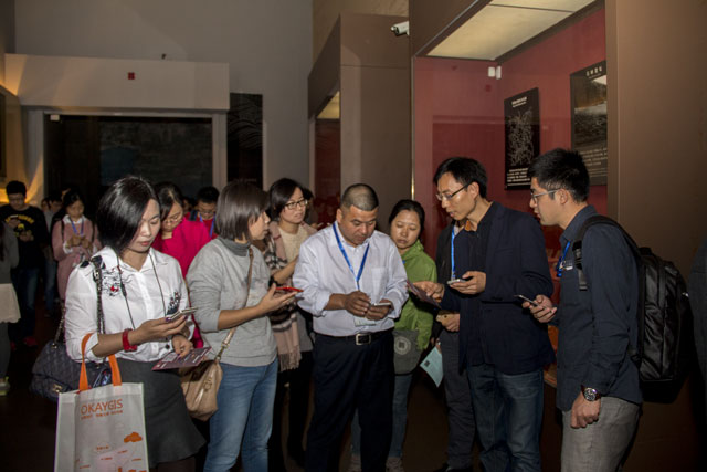 随后,参会人员在广东省博物馆工作人员带领下现场体验由广州欧科开发的“指尖粤博”智能导览APP。作为APP的首次公测,百余人同时使用,现场反响热烈。众多体验者与广州欧科的现场技术人员积极交流,提出了很多有益于智能导览改进的建议,相信“指尖粤博”在面向公众正式使用时将更加完善和成熟。