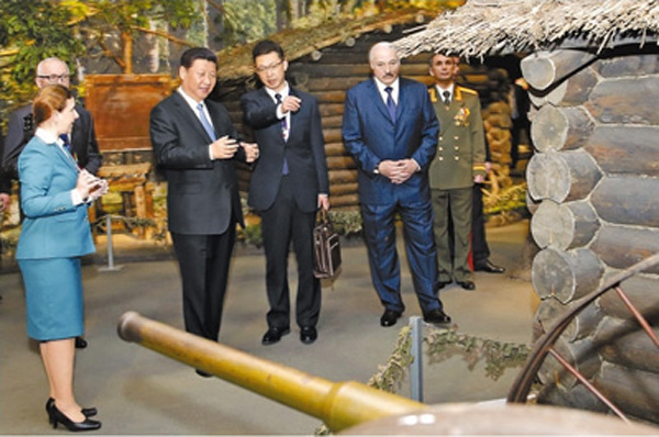【原音再现】:第二次世界大战期间,白俄罗斯人民打响了卫国战争的第一枪,表现出百折不挠的英雄主义精神,赢得了世界各国人民的广泛赞誉和尊重。今年也是中国人民抗日战争胜利70周年。中国人民抗日战争开始时间最早,持续时间最长,付出的牺牲也最大,为世界反法西斯战争胜利作出了不可磨灭的重要贡献。当年在共同抗击法西斯主义和军国主义侵略的战争中,白俄罗斯人民同中国人民并肩作战,用鲜血结下了牢固友谊。我们深切怀念那些为夺取抗战最终胜利、保卫世界和平而献身的两国英烈,中白两国人民将永远铭记他们的丰功伟绩。卢卡申科总统在卫国战争历史博物馆新馆开馆时曾说过,对篡改第二次世界大战历史、美化侵略的企图,白俄罗斯人民绝不会答应。我对此深表赞同。我们愿同包括白俄罗斯人民在内的世界人民一道,共同维护第二次世界大战胜利成果和国际公平正义。