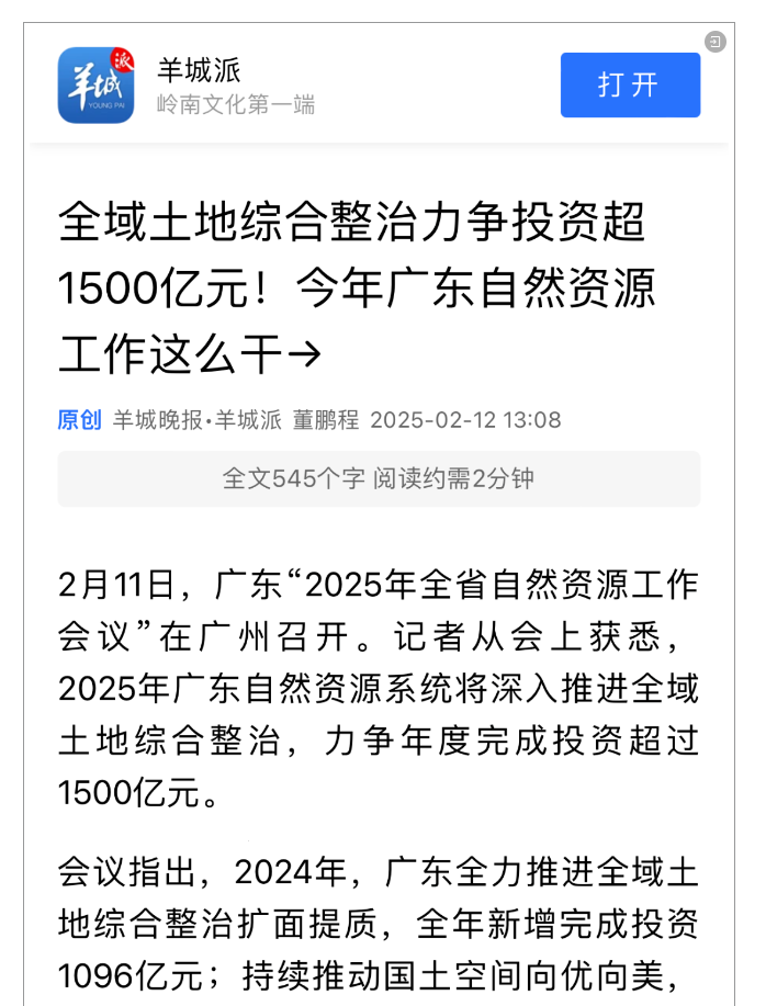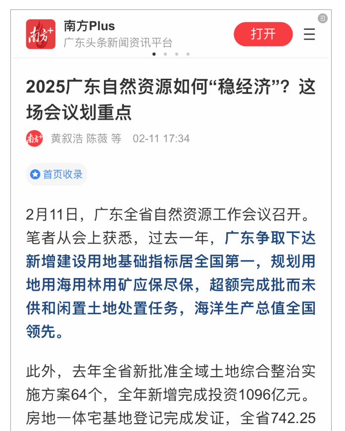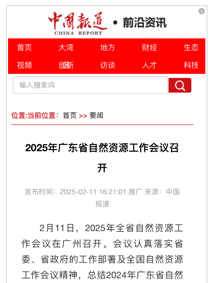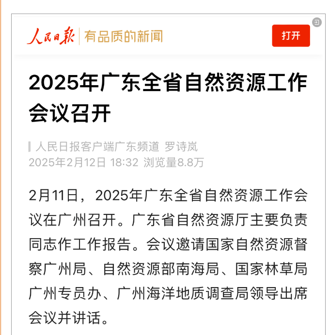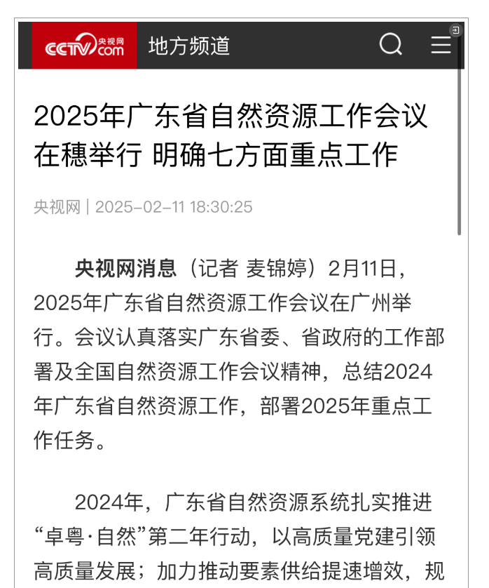 2月11日,2025年全省自然资源工作会议在广州召开。会议以习近平新时代中国特色社会主义思想为指导,全面贯彻党的二十大和二十届二中、三中全会精神,深入贯彻习近平总书记关于自然资源工作重要论述和对广东系列重要讲话、重要指示精神,贯彻落实中央经济工作会议、中央农村工作会议精神,认真落实省委、省政府的工作部署及全国自然资源工作会议精神,总结2024年我省自然资源工作,部署2025年重点工作任务。