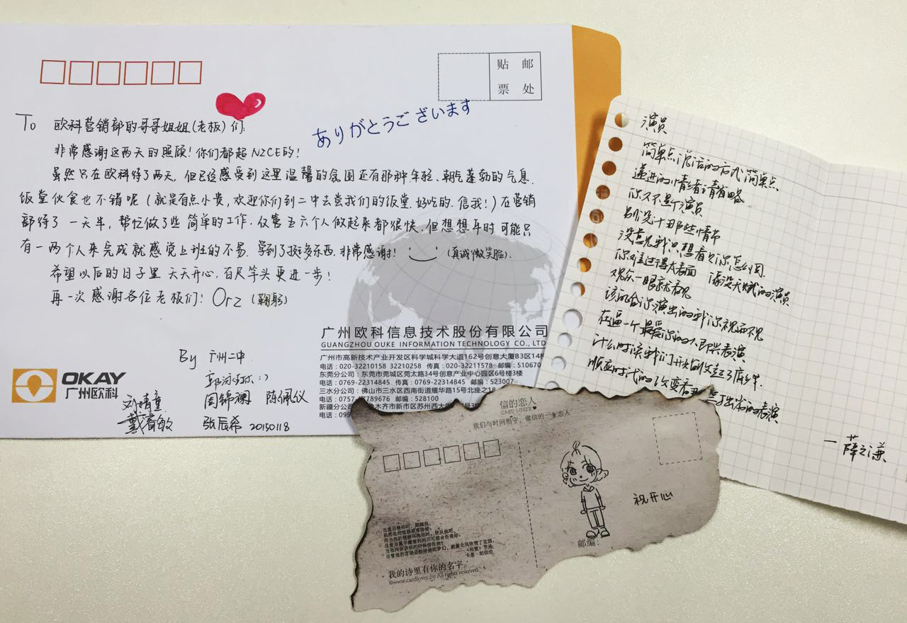 2016年7月4日-5日,广州欧科与广州市第二中学共同开展的暑期企业实习活动圆满结束,虽然只有短暂的2天实习,但大家依然收获满满,我们也看到了当代高中生的精神风貌:勇于创新、团结协作、知礼感恩。