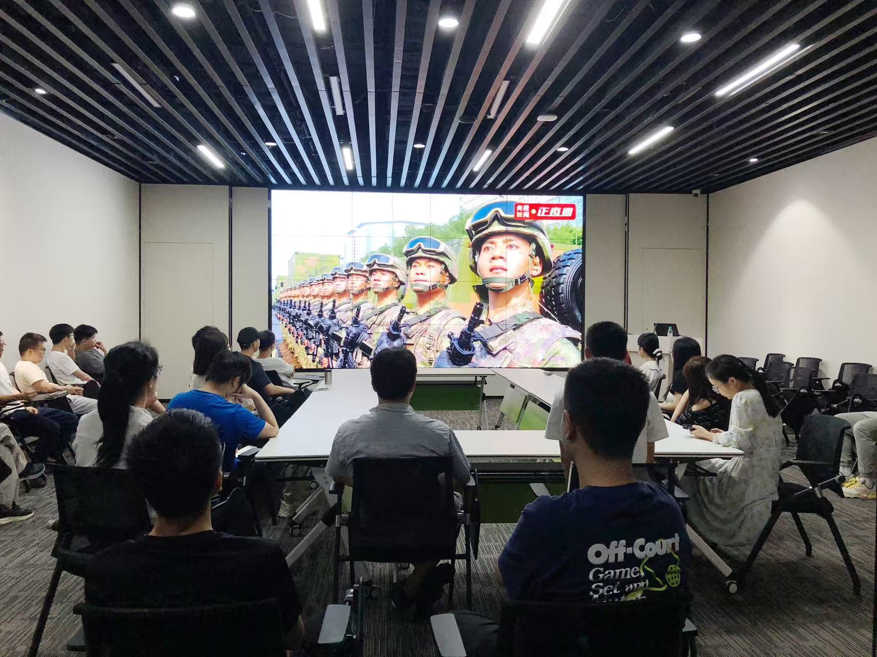 虽然因公司实际经营需要,员工分散在不同办公场地,但通过党支部的精心组织和安排,本次活动实现了跨地域同步观看。无论是在总部办公区、各地项目部,还是远程办公的同事,都通过云端技术,实时观看直播,共同见证这一历史时刻。