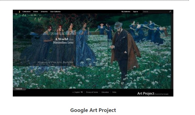 2011年2月1日起,搜索引擎巨头谷歌宣布其“艺术计划”(ArtProject)正式上线。继谷歌图书、谷歌地图之后,这家互联网巨鳄把目光转向了传统文明。通过使用“街景视图”的技术,可以使网民徜徉在众多世界的顶级艺术机构里,这其中包括美国大都会博物馆、纽约现代艺术博物馆,英国泰特美术馆等。用户可以按照艺术家姓名、艺术作品、艺术类型、博物馆、国家、城市和收藏等类别浏览其网站内容。使用特别设计的街景全景拍摄设备,对一些精选的美术馆内部环境进行了360度全方位拍摄高分辨率的图像,观众能够仔细地考查作品的笔触与细节,这是用肉眼所无法做到的。此外,用户可以从3万件艺术作品中任意进行选择,并可选择他们最中意的细节,创建自己的个性艺术馆。