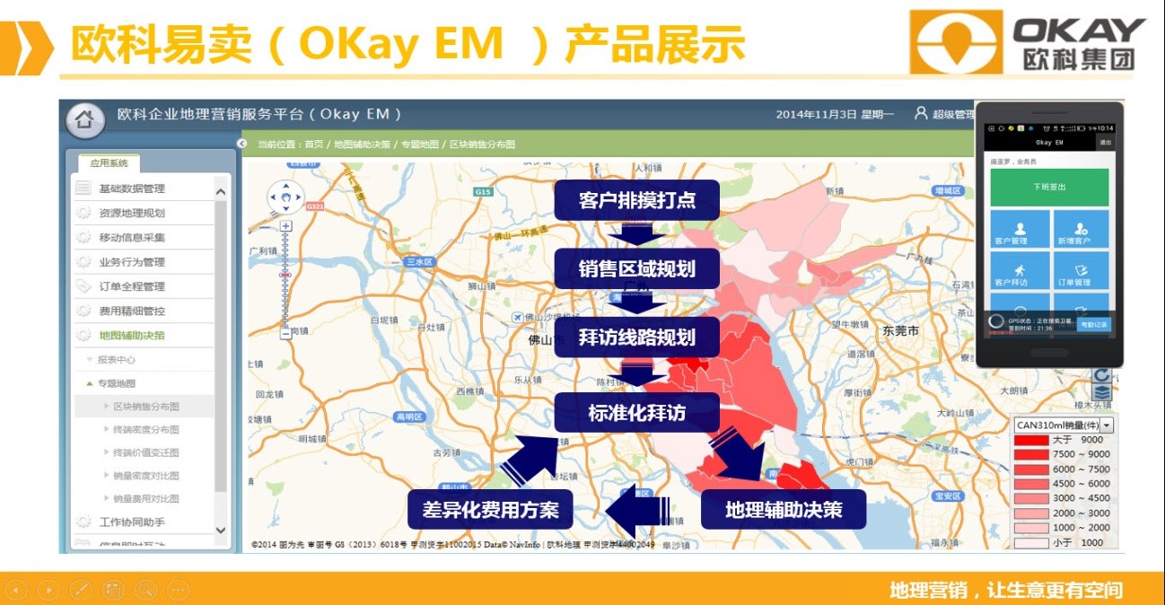 地理营销是欧科在商业地理领域的切入点。品牌理念是:地理营销,让生意更有空间。