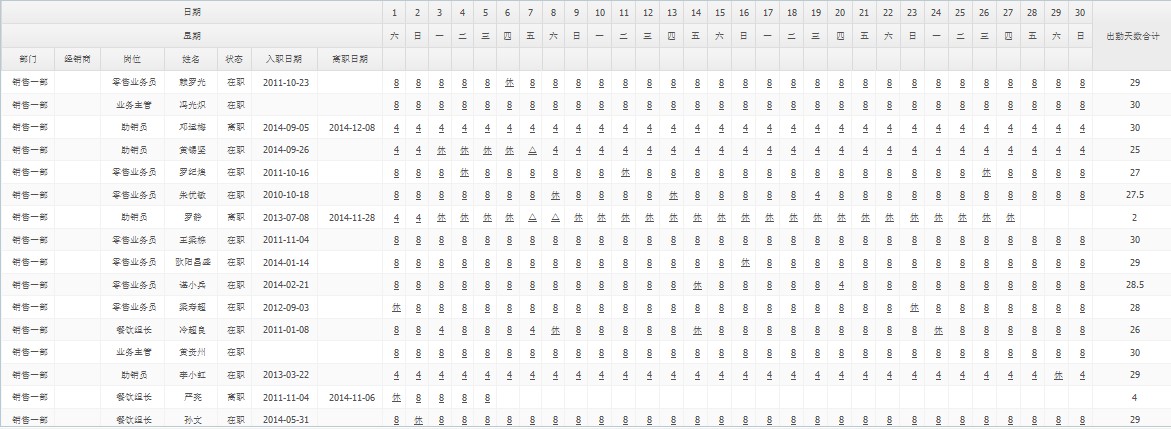 主管随时查看下属每日的考勤情况:
