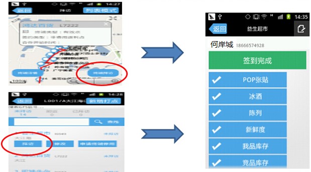 业务员到指定的客户现场,完成打卡工作;如果没有到达现场,则打卡无效,这样便有效地避免了业务员出现脱岗等一系列问题。