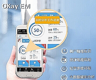 欧科易卖(OKay EM)作为移动营销管理系统(软件)的升级换代平台,拥有与众不同的优势:地理营销,如客户精准标识,资源地理南侧划,经营多维可视,大数据辅助分析等。如下图所示: