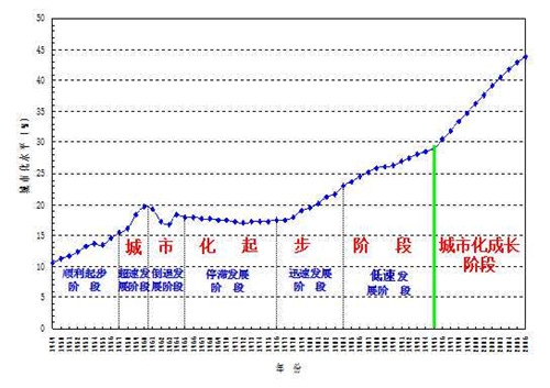 中国城市化经历了60多年曲折历程,到1995年告别城市化初期阶段,进入快速增长阶段, 这期间花去了整整47年的时间。