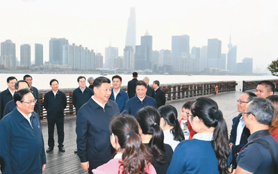 2日下午,习近平来到杨浦滨江,临近傍晚,又来到古北社区。前者呈现了“工业锈带”到“生活秀带”之变,是上海城市空间科学改造的一个范例;后者是居住着来自50多个国家和地区居民的社区,是上海社区治理和服务现状的一个缩影。