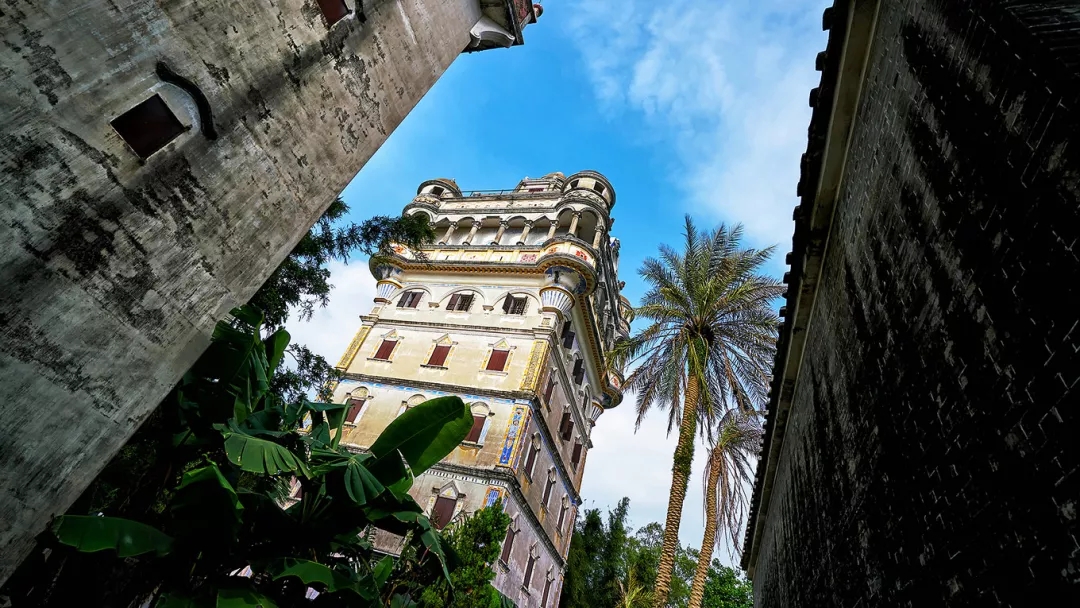 碉楼群规模宏大,外观华丽,融合了西方古希腊、古罗马、文艺复兴、巴洛克等等各种建筑流派风格,同时保留了浓郁的中国岭南传统韵味,中西合璧,美不胜收。