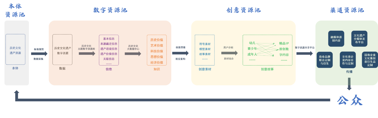 围绕数字创意资源,通过影响力升级、文旅文创力升级、空间力升级、教育传承力升级,推动数字创意资源同各类产业融合渗透,借助历史文化资源赋能产品,提升产品附加值,助力产业升级,同时实现自我增值。