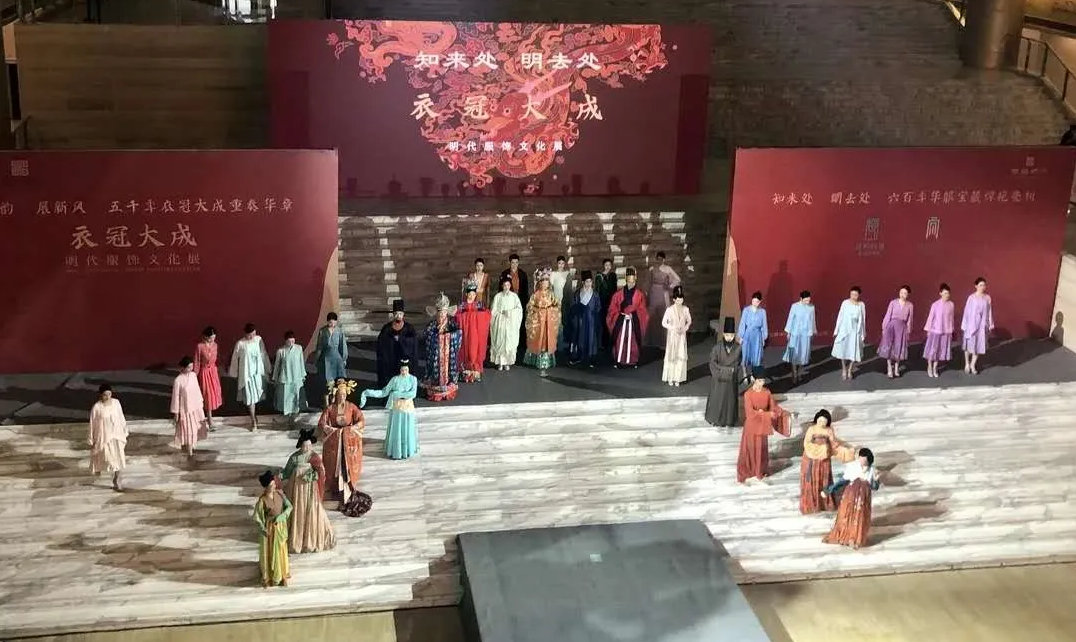 2020年9月29日,由山东博物馆和孔子博物馆联合主办的“衣冠大成——明代服饰文化展”在山东博物馆隆重开展。此次展览,山东博物馆和孔子博物馆精选了一批明代传世成衣实物珍藏,并辅以古代书画、青铜器、玉器、金银器、瓷器等共80余件珍贵文物,以博物馆展览的形式为呈现了一场无与伦比的大明风华,满足了公众体验中华传统服饰文化的精神需求。