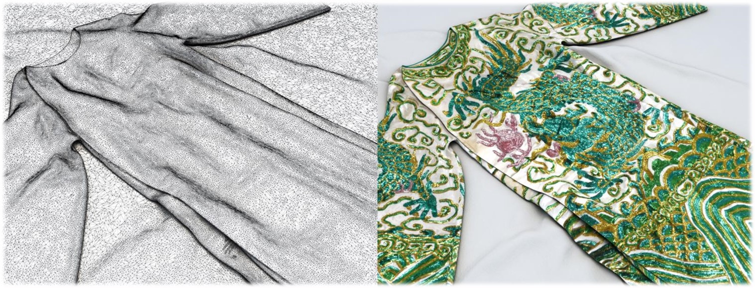 纺织品属于有机物,具有容易腐蚀损坏的特性,因而明以前的传世成衣实物存世极少。所以,这批明代珍贵服饰的数字化保护工作也有着特出的需求。以服饰的数字化采集为例,在对服饰开展三维数据和纹理采集时,会遇到以下难点: